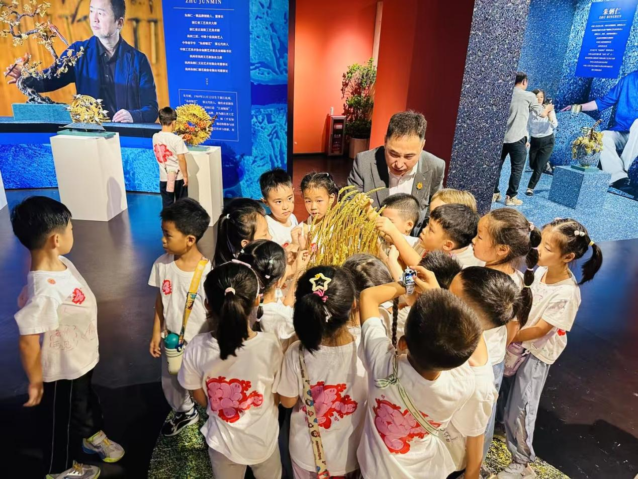 展览现场,小朋友们专注观赏铜艺作品,勾勒出文化传承生生不息的动人景象。 受访者供图