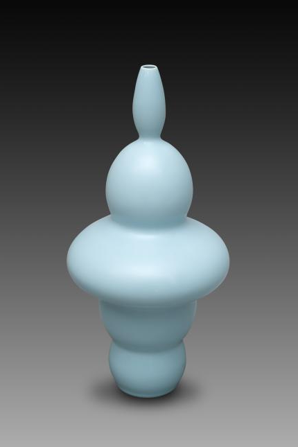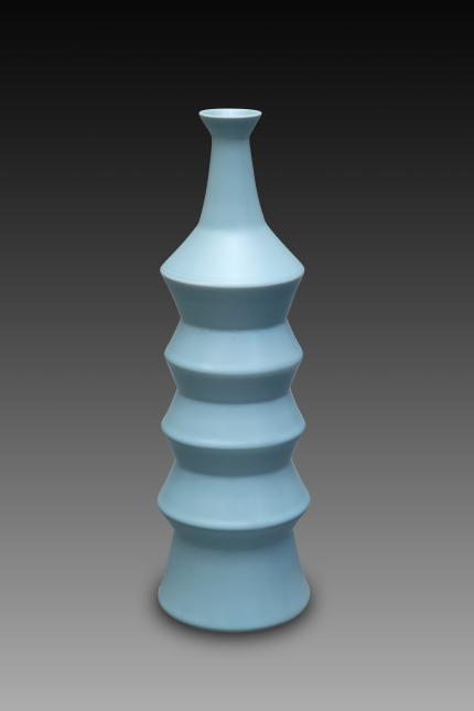 作品《丰腴》便是这一理念的杰出代表。瓶身由大小不一、形态各异的圆润部分堆叠而成,恰似生命的丰盈姿态。整体造型虽圆润却不失灵动,青瓷材质温润的质感,为作品增添了含蓄而内敛的气质。而《宝塔》则借鉴传统宝塔的形态,运用现代艺术手法创新演绎。其规整层叠结构向上延伸,每层弧度和宽窄皆经精心设计。简洁流畅的线条勾勒出挺拔的身姿,既保留了宝塔庄重肃穆的神韵,又融入了现代设计的简约之美。从《丰腴》的生命意象到《宝塔》的传统新生,二者在展现青瓷魅力的同时,也为青釉陶瓷的艺术表达开拓全新路径,展现出对多元艺术风格的探索与融合。